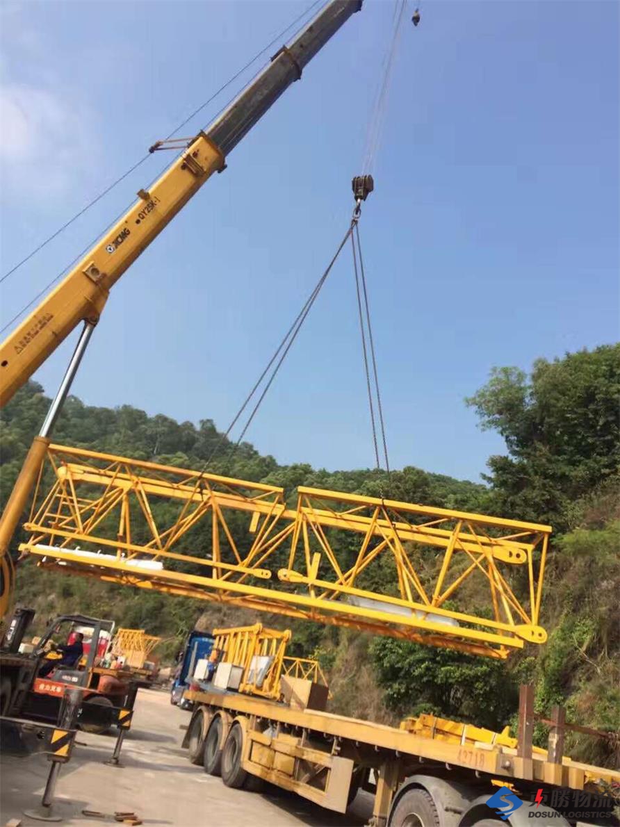 從四川運輸工地吊車平臺,四川本地提貨,一單12車,到深圳換香港平板車。卸貨,裝貨送香港工地.