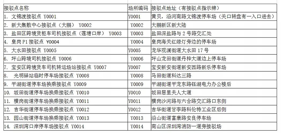 1. 到入境接駁點換司機,但不卸貨。目前粵港澳地區擁有場所編碼的入境接駁點如下圖: