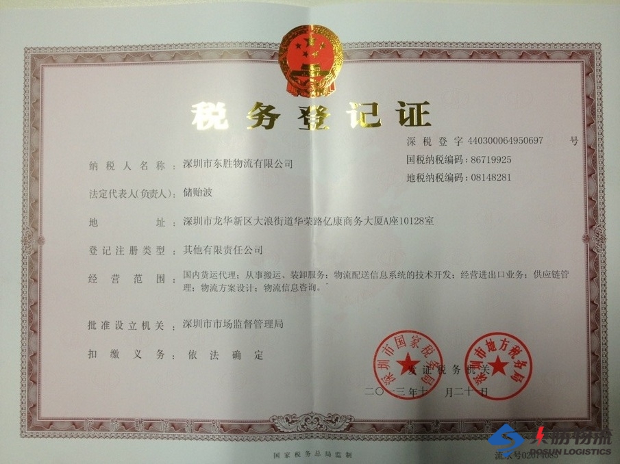 東勝物流稅務登記證